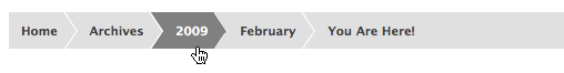 パンくず (Breadcrumbs) ってその必要性に疑問を感じることの多い要素の筆頭だと思う。この案件で要るか、これ? みたいな。そんなわけだからあまり力を入れて作ったことがなかったんだけど、Veerle’s blog のパンくず作成チュートリアル Simple scalable CSS based breadcrumbs を読んで、必要かどうかはとりあえず置いといて、どうせ置くならお洒落な方がいい、っていうか俺もクールなパンくず作る! と盛り上がってしまい、作ってみた。