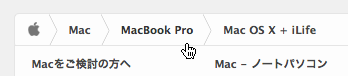 パンくずをどうマークアップするか、というのはよく議論される話題。ちなみに前述の Veerle’s blog では ul、Apple は ol だ。でも俺に言わせりゃんなもん p に決まってんだろ、である。パンくずってのはあくまでも「迷子にならないための道しるべ」であるべきだと思うから、なんというかこう「1 本につながった感じ」が欲しいんだよね。リスト形式だと 1 つ 1 つのパンくずが独立しちゃってる気がして、どうにも違和感を感じるというか。そういった意味では ol ってのはまあアリかなと思うけど、でも実際のところ横一列に並べる以外の見せ方ってなかなか考えづらいわけで、そうするとやっぱ p じゃね、てのが僕の考え方だけどどうだろう。